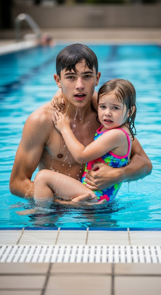 I looked up just in time to see Ryan sprint to the edge of the pool. Without hesitation, he dove in — strong, sure, fast. The water rippled violently, then went still. A small figure surfaced — a tiny girl, maybe four years old — limp and silent in his arms.