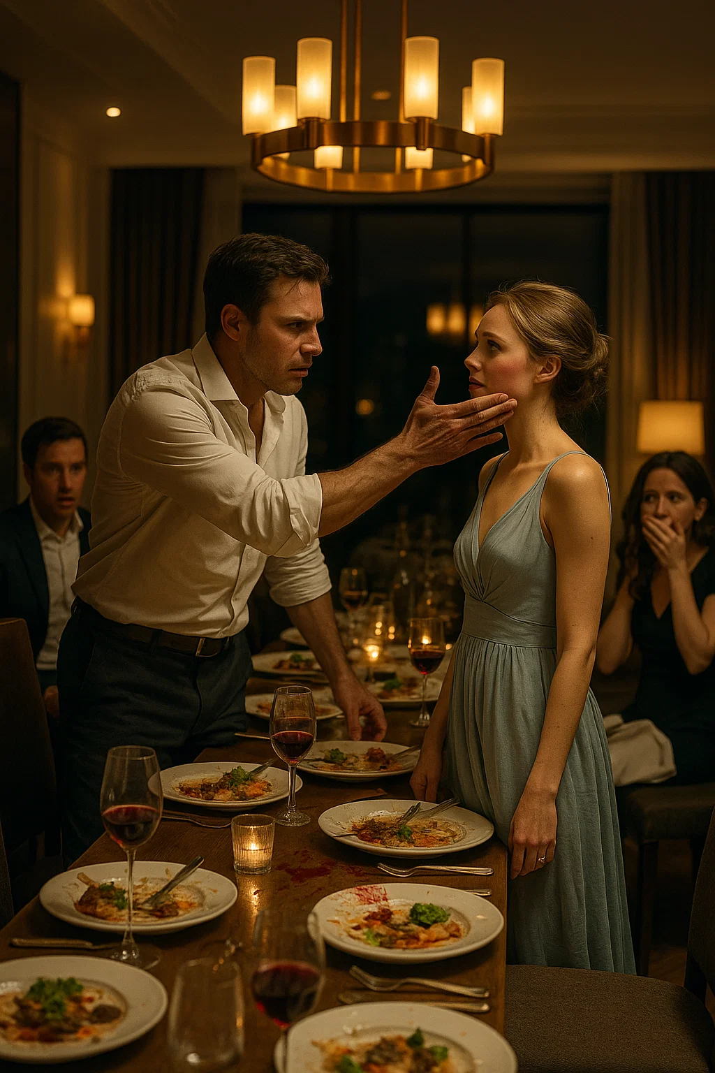 When she returned to the dining room, the conversation had dissolved into awkward silence. Daniel was laughing too loudly, desperate to restore control. “There she is!” he said. “Come on, honey, don’t make a scene.”